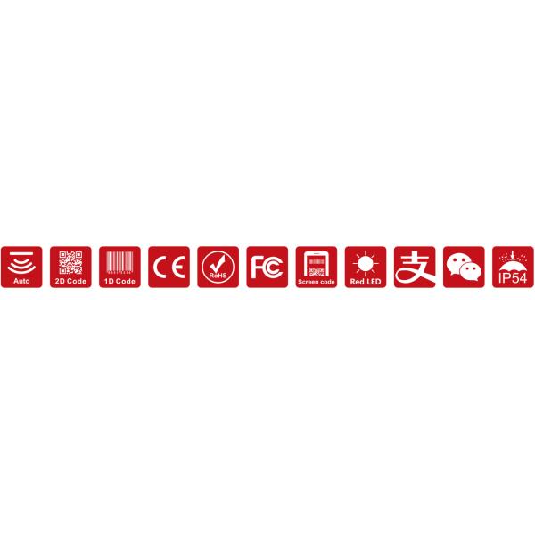 | Decoding Capability | 1D: UPC-A; UPC-E; EAN-8; EAN-13; Code39; Codabar; Code128; Interleaved 2 of 5;Industrial 2 of 5; Matrix 2 of 5; Code 93;UCC/EAN 128; Code 11; MSI; UK/Plessey ; ISBN/ISSN; GS1 Databar Expanded; GS1 Databar; GS1 Databar Limited. 2D: QR code; PDF 417; Datamatrix |